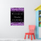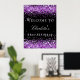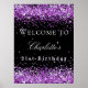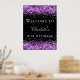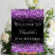 Birthday party black purple glitter welcome poster