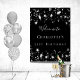 A welcome board for a girly and glamourous 21st (or any age) birthday party. A classic black background decorated with faux silver stars. Personalise and add a name and age 21. White letters.