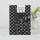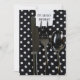Birthday party invite with black silverware on polka dot napkin.