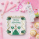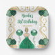 This birthday plate features an elegant gold frame, a beautiful princess with blonde hair and a green dress, flowers and a balloon. This is perfect for a birthday party.