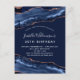 Birthday party blue agate marble rose gold invitation postcard