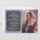Birthday Party Blue Check Rustic Chalk Photo Invitation