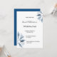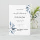 An elegant and simple 50th (or any age) birthday party invite. On front a chic white background decorated with blue botanical branches, florals. Templates for a name, age 50 and your party details.