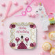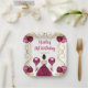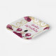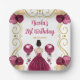 This birthday plate features an elegant gold frame, a beautiful princess with brown hair and a burgundy red dress, flowers and a balloon. This is perfect for a birthday party.