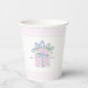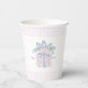 Every day is a gift themed paper cups featuring pink pastel gift and pink gingham boarders.