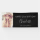 Celebrating a 21st (or any age) milestone birthday for a girl/woman. An elegant modern black background. Personalise and add your own photo of the birthday girl. The text: The name in white with a modern hand lettered style script. Personalise and add a name, age 21 and a date. Can be used both as welcome banner or party wall decoration.