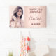 A banner celebrating a 21st (or any age)milestone birthday for a girl, woman. An elegant trendy rose gold, pink gradient background. Personalise and add your own photo of the birthday girl. The text: The name in dark burgundy with a modern hand lettered style script. Tempates for a name, age 21 and a date. Can be used as a party welcome sign, party wall decoration and as a keepsake.