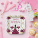 This birthday plate features an elegant gold frame, a beautiful princess with dark skin and a burgundy red dress, flowers and a balloon. This is perfect for a birthday party.