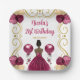 Birthday Party Dark Skin Princess in Burgundy Red Paper Plate