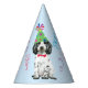 Happy birthday greetings with this design featuring a cute, party hat-wearing English Cocker Spaniel puppy surrounded by colourful streamers.