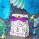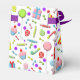 Birthday design featuring gifts, cupcakes, candy, balloons, and noisemakers. To personalise edit text to add name.