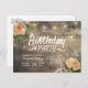 Birthday Party Flowers Rustic Wood String Lights Invitation Postcard