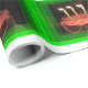A closeup shot of a Birthday Cake with a green frame added to it That's on a table.