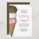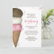 This design features a cute watercolor ice cream birthday, a stylish trendy calligraphy script, a fun festive whimsical celebration, QR code website online URL, and Facebook social media event page, an ice cream scoop waffle cone, a simple minimalist minimal design, a summer birthday celebrate a party, a pink white chocolate brown, a Neapolitan flavour ice cream cone, a fun creative unique birthday invites, an ice cream themed birthday invitations