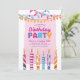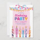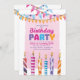 A delightful watercolor invitation with six colourful, lit candles and a party flag upper border.