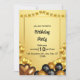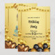 Set the stage for a glamourous birthday celebration with this luxurious gold and black invitation card. Decorated with shiny metallic balloons, heart-shaped accents, and festive banners, this card exudes elegance and festivity. The rich gold background and bold black text make your party details stand out beautifully. Ideal for adult birthday parties or upscale events, this invite will leave a lasting impression on your guests. Fully customisable to suit your event's date and details.