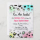 A bright and colourful birthday party invitation featuring a background of neon airbrush inspired leopard print on front and back. Personalise the text on front with details of your occasion.