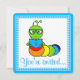 This customisable invite features a bookworm reading a book. For matching items type "penguincornerstore bookworm" into the Zazzle search bar.
