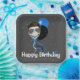 Man's smiling face with hair and aviator sunglasses on party balloons and confetti for a birthday party.