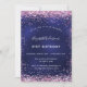 A modern, stylish and glamorous invitation for a 21st (or any age) birthday party. A navy blue background, decorated with pink faux glitter dust. The blue color is uneven. Personalize and add your name and party details.