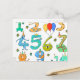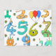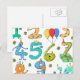 Cute and colourful cartoon character numbers, looking as if they are at a kids birthday party. A fun design for a childrens birthday celebration.