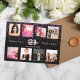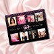A photo collage thank you card for girls and women. Personalize and add 8 of your 21st (or any age) birthday party photos on the front. Add your name, age, date. A stylish black background with pink and purple confetti.