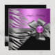 Birthday Party Pink Silver Zebra Black Grey Bow Invitation