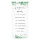Birthday party program and menu card. Personalise and add a name, age, date and the menu. A white background. Decorated with green confetti, black text.