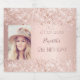 A label for a girly and glamourous 21st (or any age) birthday party. A rose gold, blush pink gradient background with confetti. Personalise and add your own photo of the birthday girl, a date, name and age. The text: The name is written with a modern hand lettered style script.