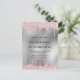 A modern, stylish and glamourous invitation for a woman's 30th (or any age) birthday party. A faux silver metallic looking background with an elegant pink faux glitter drip, paint dripping look. The name is written with a black modern hand lettered style script. Personalise and add a name, age and party details.
