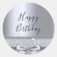 Birthday party silver sparkle bow metallic classic round sticker