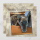 This invitation front features a cute black and grey cattle dog on this campout slumber party birthday invitation. Personalise the template text on the front and back, remove text, or click customise to select a typeface style, size, and colour you like. Keep the placeholder cover photograph or replace it with your favourite square photo of the birthday child.