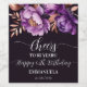 Elegant purple rose gold peonies floral birthday party personalised wine bottle labels, purple and rose gold leaves watercolor peonies dark purple background birthday party wine labels
