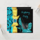 Birthday Party Teal Blue High Heels Yellow Silk Invitation