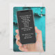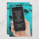 Cellphone in hand on aqua textured background for a birthday party.