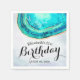 Happy Birthday Party Napkins Templates - Elegant Watercolor Turquoise & Gold Agate Geode Slice.