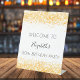 A sign for a girly and glamorous 50th (or any age) birthday party. A white background witt faux gold glitter dust. Personalize and add a text, name and age 50. The name is written with a modern hand lettered style script.