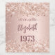 A bottle label for a girly and glamourous 50th (or any age) birthday party with the girls. A rose gold background with an elegant faux rose gold confetti. The text: The name is written in dark rose gold with a large modern hand lettered style script. Personalise and add a date, name and year of birth.