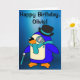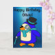 Cheerful, happy Birthday card of a Cute Baby Penguin in light frosty blue colors, looking snazzy and posh!