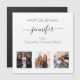 A card from friends for a woman's 21st (or any age) birthday, celebrating her life with 3 of your photos of her, her friends, family, interest or pets. Personalise and add her name, age 21 and your names. Black coloured letters. A chic classic white background. Her name is written with a modern hand lettered style script with swashes.