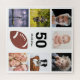 A gift for a man's 50th (or any age) birthday, celebrating his life with a collage of 8 of your photos. Templates for age 50 and a date. Date of birth or the date of the anniversary. Black coloured letters. White background.