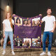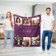 A gift from friends for a woman's 21st birthday, celebrating her life with a collage of 6 of your high quality photos of her, her friends, family, interest or pets. Personalise and add her name, age 21 and your names. Golden text. A chic, feminine purple background colour. The purple background colour is uneven. Her name is written with a modern hand lettered style script with swashes. Decorated with faux gold stars dripping.
