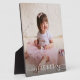 Tabletop plaque with a built-in easel features your favourite photo and any text put directly on the hardboard panel for a stunningly crisp image with an easy wipe clean surface. Great as a gift or to display your favourite photo in your home. TIP: If using square plaque, crop your photo to square BEFORE uploading it for best results. 3 SIZES AVAILABLE.
