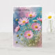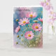 A bouquet of pink cosmos and baby's breath is presented against a soft, pastel-coloured background with a dreamy, watercolor effect