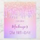 For a girly and glamorous 21st (or any age) birthday party with the girls. A rainbow colored background with elegant faux glitter drips, paint dripping look in purple, pink. The text: The name is written in purple with a trendy hand lettered style script. Personalize and add a name, age 21 and a date. Date of birth or the date of the party.