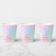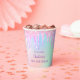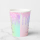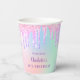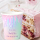 For a girly 10th (or any age) birthday party. A holographic, rainbow colored background in pink, purple, rose gold and mint green decorated with purple and pink faux glitter drips. Personalize and add a date name and age 21. Purple letters.