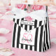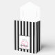 A favour box for a 50th, lr any age birthday party. Classic black and white vertical stripes as background. With girly and feminine pink Flowers, roses as decoration. With the text: Thank You!