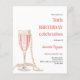 A modern, stylish and glamourous invitation for a Pearls and Prosecco birthday party (any age) A white background with a glass, flute with pink bubbles and pearls. The name is written with a modern hand lettered style script. Personalise and add your party details.