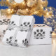 Tartan plaid pet paw print with Happy Birthday text on white background.