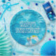 Swimming pool water with cocktail and beach ball splash in turquoise water for birthday party.